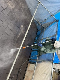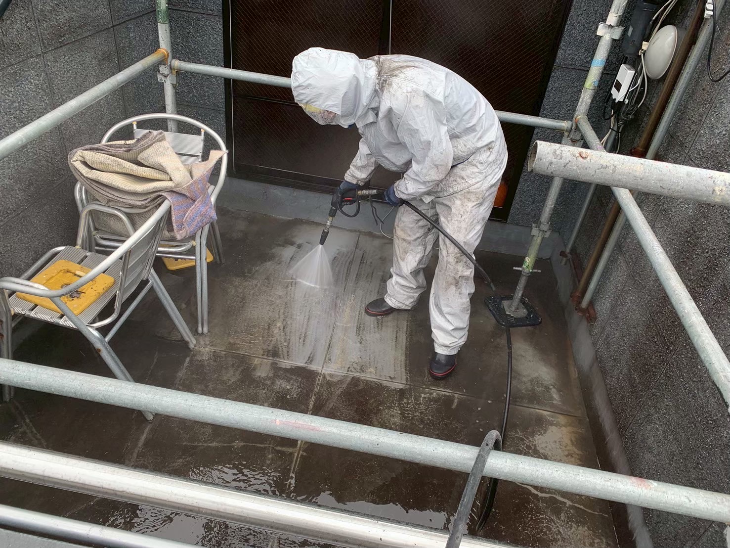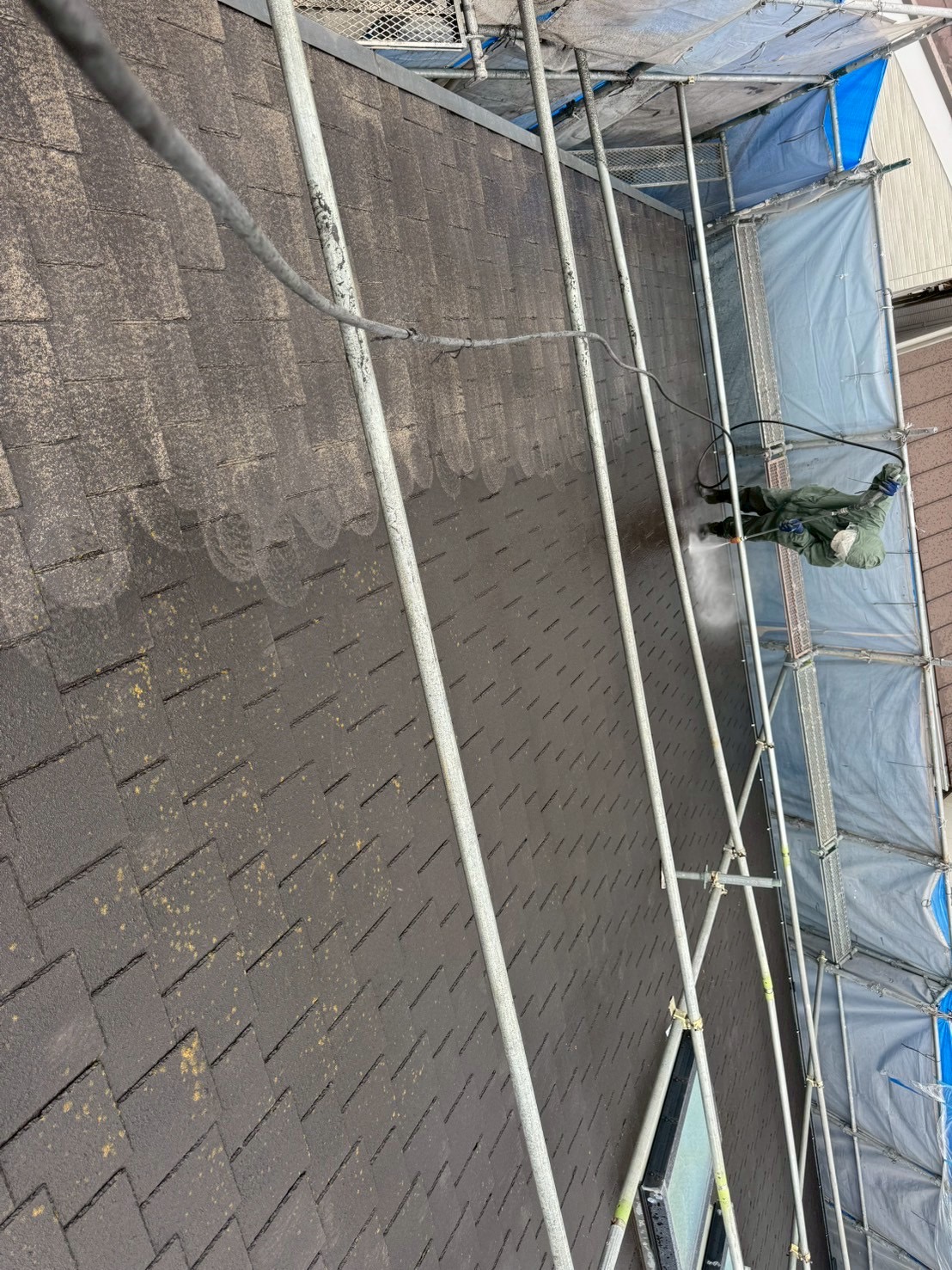痛んで紛体化した塗料も、その他もろもろを除去します。で、下塗りに気持ち良くガッチリ密着してもらうんです。
